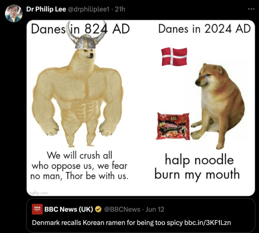 But don’t let the well-established, socialist welfare state apparatus fool you. The Danes don’t live in some sort of nanny state where the government tries to micromanage the lives of the population. The Danes are a proud people – of Viking stock no less. Descended from seafaring traders and warriors who raided2, settled, and influenced many areas of European culture. They are still as hearty and independently-minded a people as they ever were. Just not with spicy Asian noodles…