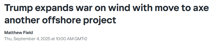 “In August, Mr Trump ordered Ørsted to stop work on a $1.5bn (£1.1bn) wind farm project 12 miles south of Martha’s Vineyard that was already 80pc complete...The US president’s attack on Denmark’s Ørsted comes after his offer to buy Greenland was he was rebuffed by the Danish government. Mr Trump has repeatedly insisted he intends to annex the world’s largest island and threatened to use economic pressure to secure the region…