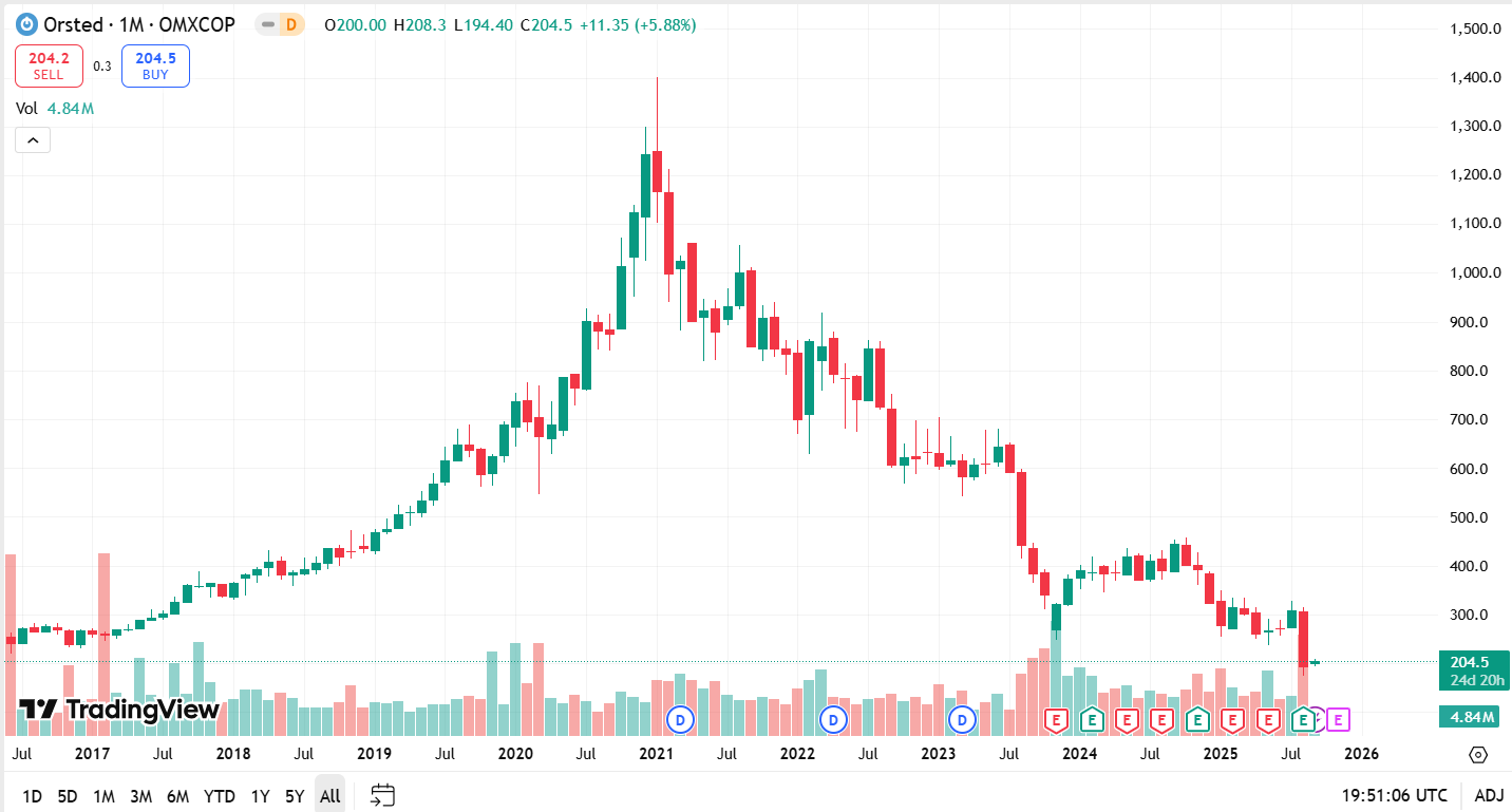 One of the major reasons for this pitiful Danish stock market performance is a company that has drawn the ire of Donald Trump and wind energy opponents everywhere – Ørsted A/S.