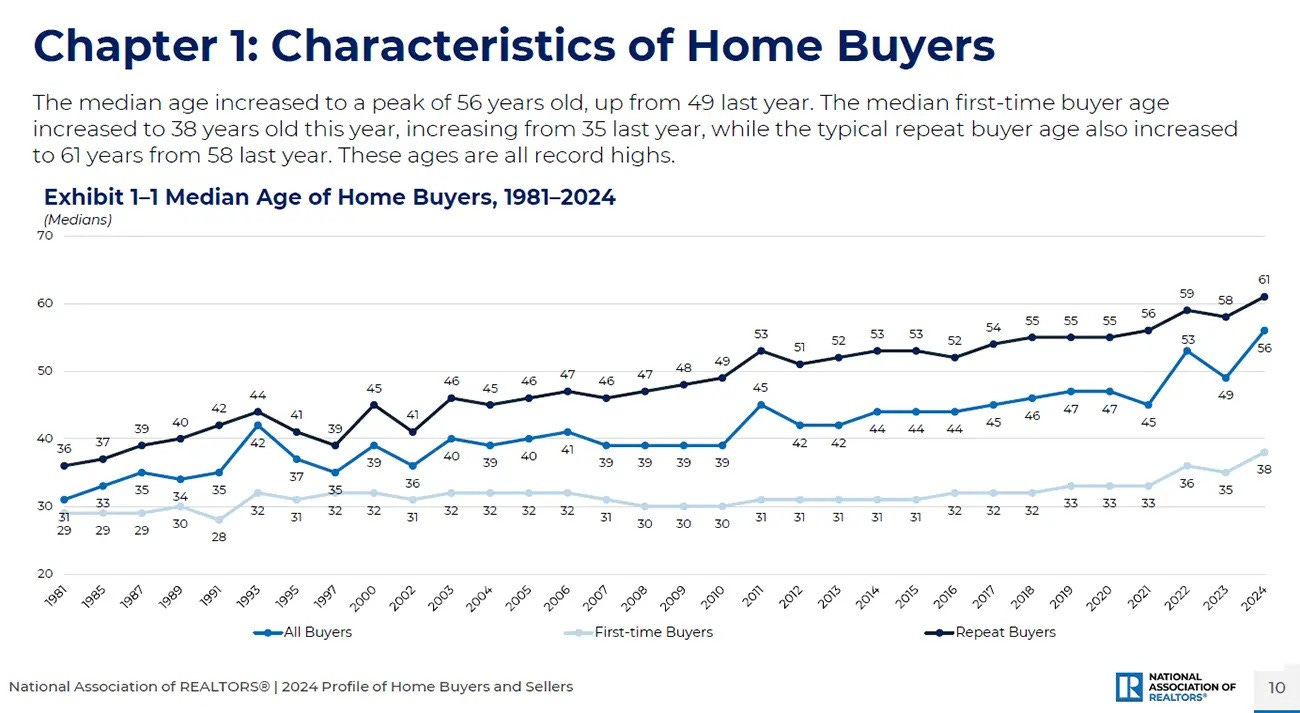 The Baby Boomers were just starting to enter their prime earnings years. Those born smack dab in the middle of the Boomer generation, in 1955, were turning 30 in that first year of Ronald Reagan’s second presidential term. Many owned homes and were well on their way to growing the nest eggs that their grandchildren today can only dream about. The median age for first-time home buyers in the United States at the time was 29 years old. In 2024 it was 38, and at the end of 2025 it had ticked up to 40.