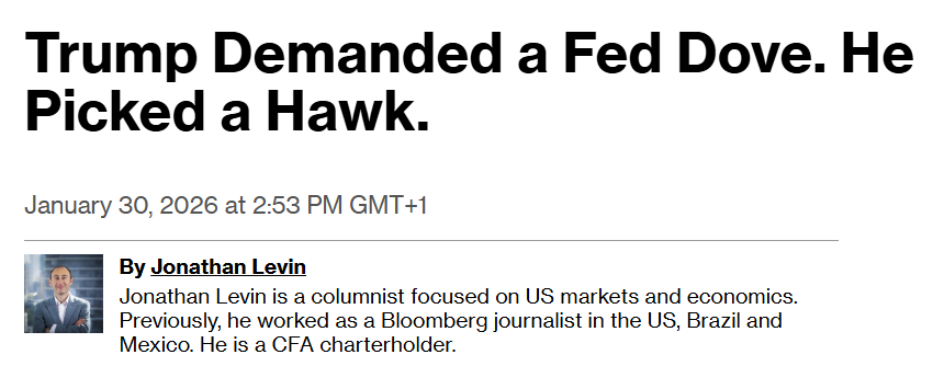 “So Warsh spent 15 years as a hawk. Opposed QE. Resigned in protest. Then Trump started looking for a Fed chair. Suddenly, a different tune. In July 2025, Warsh appeared on CNBC criticizing Powell for not cutting rates fast enough. He called for ‘regime change’ at the Fed…