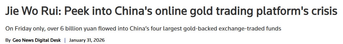 Last week was pretty chaotic at the Jie Wo Rui “underground” gold trading stall in a mall in Shenzhen, China right across the border from Hong Kong. Chinese retail investors, who have had a bit of a wakeup call with real estate over the last five years, have piled into gold and silver. Customers of Jie Wo Rui were told last week that neither their funds, nor “their” gold were available for withdrawal.