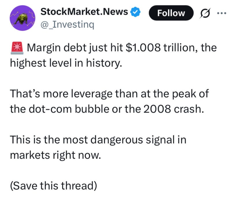 So, regarding all the margin debt, I’m not trying to dunk on Augur Infinity here,1 but this tweet displays either some really lazy thinking or an attempt at click bait.