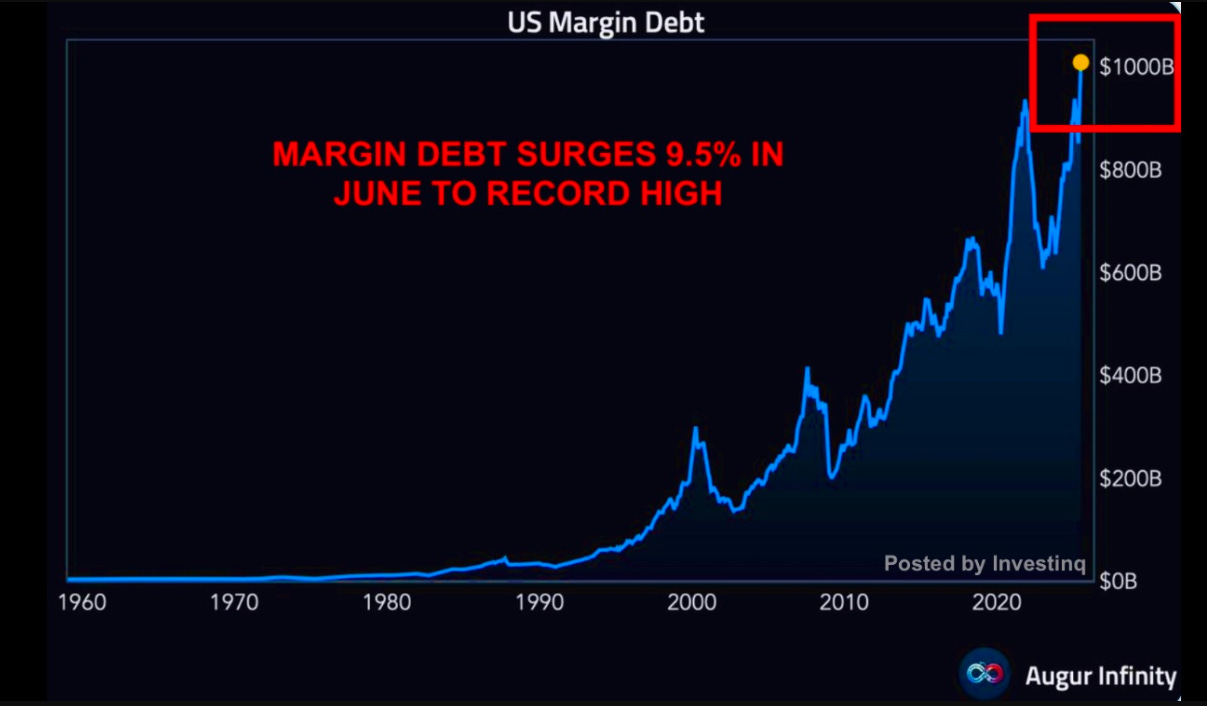So if you took the amount of margin debt then – no need to do anything fancy here – again, just eyeballing the chart it looks like about $400 billion (in 2008 dollars). When you increase that by 400% -- meaning that relative to what it costs to buy the S&P now, the amount of dollars needed in 2025 to take on the same amount of debt and gain the same exposure to “the market” – you get $2 trillion.